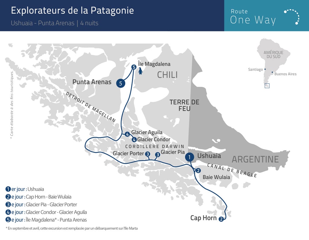 Jour 5 à 9  – Croisière Australis de USHUAÏA à  PUNTA ARENAS à bord du M/V Ventus Australis
